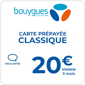 Recharge code for prepaid Bouygues Telecom card. Not compatible with packages and blocked packages