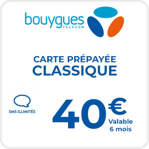 Recharge code for prepaid Bouygues Telecom card. Not compatible with packages and blocked packages
