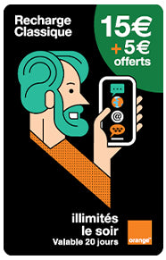 Recharge code for prepaid Mobicarte Orange formula, mainland France.