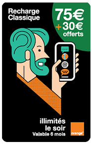Recharge code for prepaid Mobicarte Orange formula, mainland France.